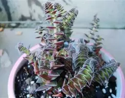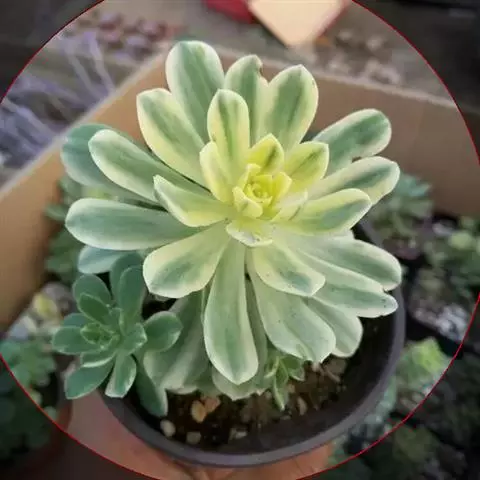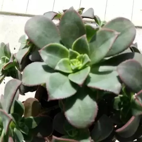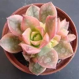 红缘莲花掌属蔷薇目、景天科植物,原产大西洋的加那利群岛。质厚,蓝绿色,被白霜,叶缘红褐色。聚伞花序,…