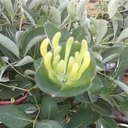 山银花在华南地区野外山林生长。木质藤本,长2~5m。树皮黄褐色渐次变为白色,嫩时有短柔毛。叶对生,卵圆形至椭圆形,长4~8cm,宽3.5~5cm,上面绿色,主脉上有短疏毛,下面带灰白色,密生白色短柔毛;花冠管状,长1.6~2cm,稍有柔毛,初开时白色,后变黄色。花期6~9月,果期10~11月。 灰毡毛忍冬呈棒状而销弯,长3~4.5cm,上部直径2mm,下部直径1mm,表面绿棕色至黄白色。总花梗集结成簇。开放者花冠裂片,不及全长之半,质稍硬,手捏之稍有弹性,气清香,味微苦甘。主要成份为绿原酸、木犀草苷等。