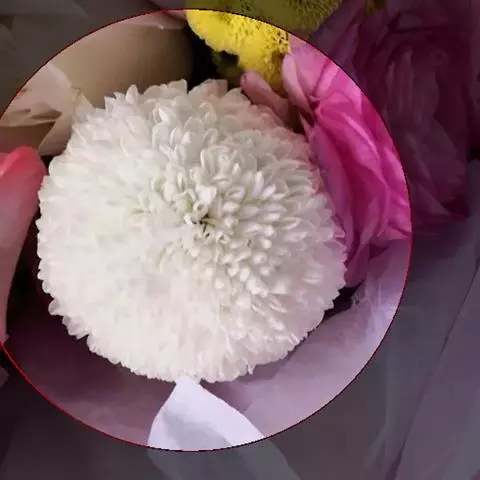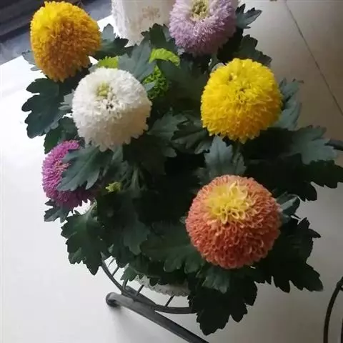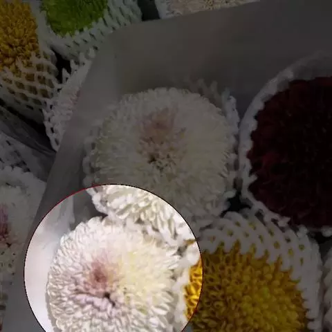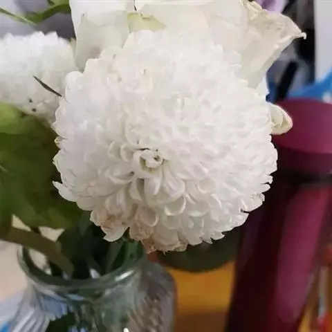 乒乓菊是菊科的一种植物,因为外形像乒乓球而得名,有黄、绿、白、红四种颜色,常作为鲜切花使用,原产自日本。乒乓菊造型讨巧、可爱,而且保鲜时期较长,代表爱情圆满长久。