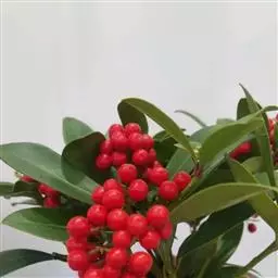 常绿灌木或小乔木。叶椭圆形,两端尖。果扁圆形,朱红色;味甜,可食。产自中国东南部,广东地区大量盆栽。
