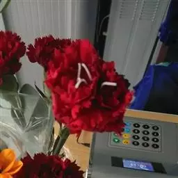2、开放度小:一手捏住花头底部,另一手用食指侧面轻轻用力拨花头外侧的花瓣,这样花就开大了。不可以用手去拨花心,让康乃馨泡水后慢慢开放即可。