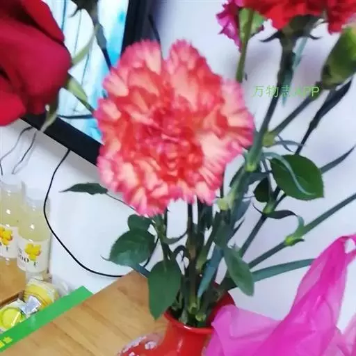 康乃馨,原名:香石竹,又名:狮头石竹、麝香石竹、大花石竹,拉丁文名:Dianthus caryophyllus L. 被子植物门;双子叶植物纲;中央种子目;石竹科;石竹属;香石竹。