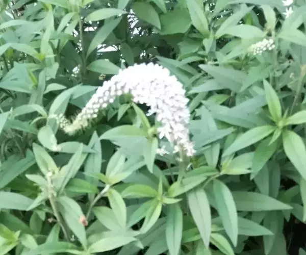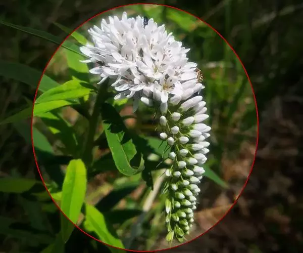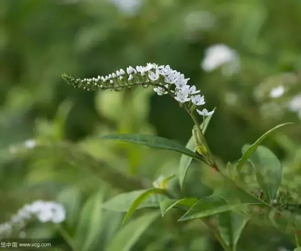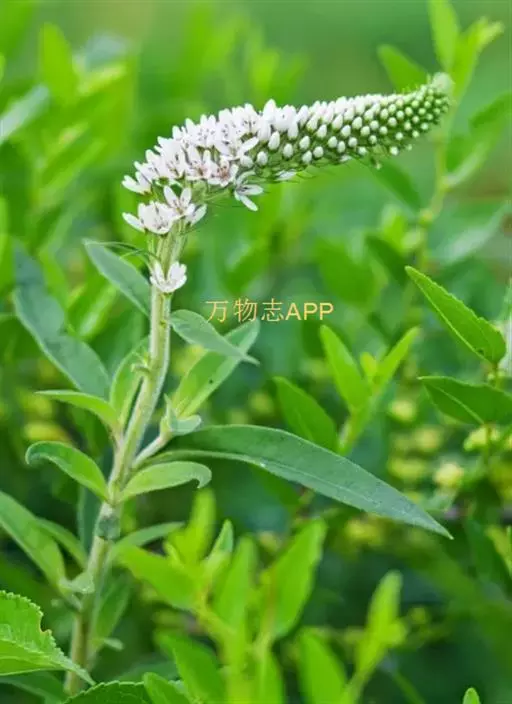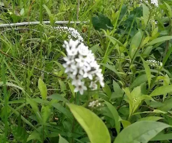 多年生草本,具横走的根茎,全株密被卷曲柔毛。茎直立,高30-100厘米。叶互生或近对生,长圆状披针形、倒披针形以至线形,长4-10厘米,宽6-22毫米,先端钝或锐尖,基部楔形,近于无柄。总状花序顶生,花密集,常转向一侧;花序轴长4-6厘米,后渐伸长,果时长可达30厘米;苞片线状钻形,花梗长4-6毫米,通常稍短于苞片;花萼长3-4毫米,分裂近达基部,裂片长圆形,周边膜质,顶端圆形,略呈啮蚀状;花冠白色,长7-10毫米,基部合生部分长约2毫米,裂片舌状狭长圆形,宽约2毫米,先端钝或微凹,常有暗紫色短腺条;雄蕊内藏,花丝基部约1.5毫米连合并贴生于花冠基部,分离部分长约3毫米,具腺毛;花药椭圆形,长约1毫米;花粉粒具3孔沟,长球形 [(29-31.5) × (20-24)微米],表面近于平滑;子房无毛,花柱短,长3-3.5毫米。蒴果球形,直径2.5-4毫米。花期5-8月;果期8-10月。 [1-3]
