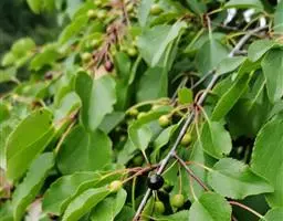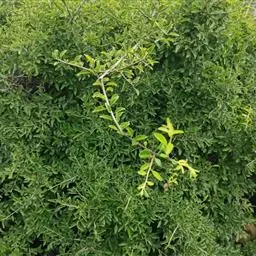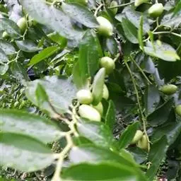 枣树 落叶小乔木,稀灌木,高达10余米;树皮褐色或灰褐色;有长枝,短枝和无芽小枝(即新枝)比长枝光滑,紫红色或灰褐色,呈之字形曲折,具2个托叶刺,长刺可达3厘米,粗直,短刺下弯,长4-6毫米;短枝短粗,矩状,自老枝发出;当年生小枝绿色,下垂,单生或2-7个簇生于短枝上。