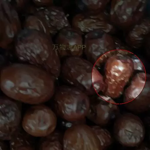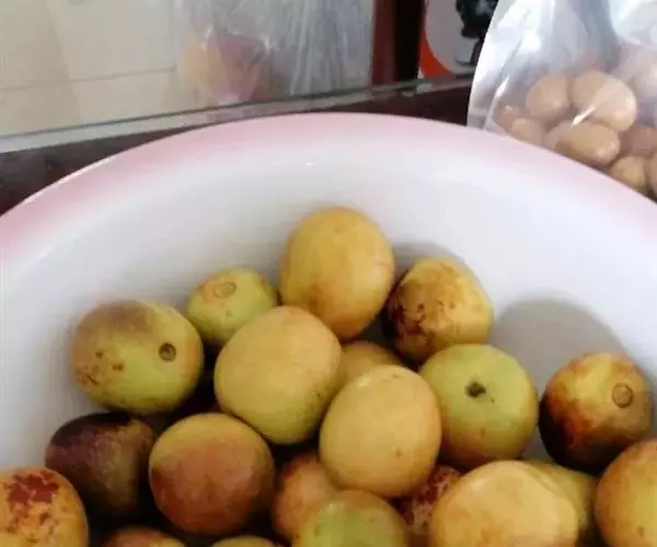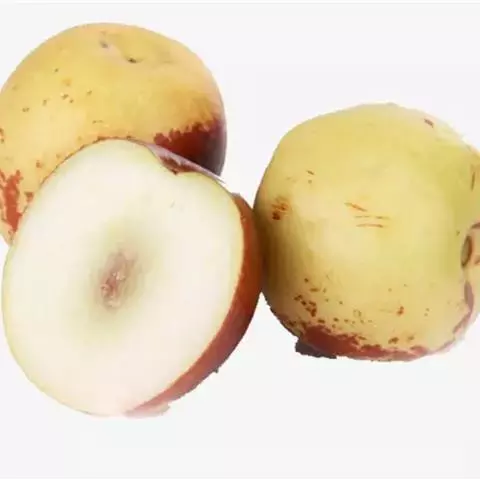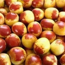 鸡蛋枣 果实特大,近圆形,平均单果重30克,最大50克。果实大小均匀,果皮厚,深红色。鲜枣可溶性固形物含量31%-35%,可食率97%。果肉质细,酥脆多汁,香甜可口。9月中下旬开始成熟,成熟期遇雨不易裂果,耐贮茂,是优良的鲜食、制干、蜜饯兼用品种,旱台地和水地均可栽培。
