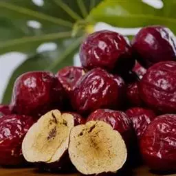 梨枣 果实特大,长圆形,平均单果重25克,最大50克,大小不匀,果皮薄,红色,果肉厚,肉质松脆,较粗,味甜,汁较多。鲜枣含可溶性固形物27.9%,可食率97.3%。果实生长期110天左右,幼树丰产性强。成熟期不整齐,遇雨易裂果,且采前落果严重,缺水时未红先蔫。