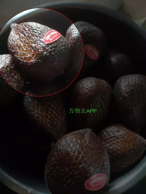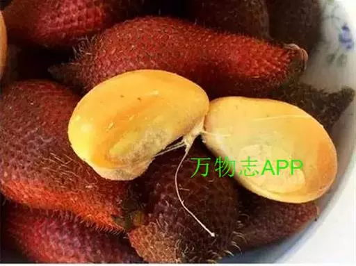 蛇皮果(学名:Salacca zalacca (Gaertn.) Voss)是棕榈科,蛇皮果属植物,植株相对较小,雌雄异株,叶羽状全裂,羽片披针形或线状披针形,呈“s”形或镰刀状;花序生于叶闻,总花序梗及分枝被包于宿存的佛焰苞内,花萼和花冠管状,花丝短,果实球形、陀螺形或卵球形,顶端具残留柱头,种子长圆形、球形或钝三棱形,味酸或甜,胚乳均匀、坚硬,胚基生。