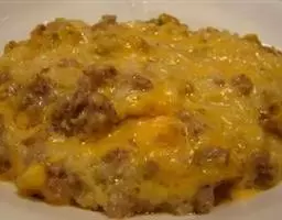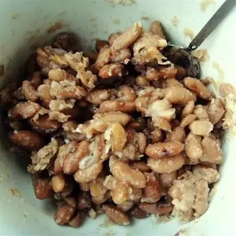 4.锅中倒入油,下入猪肉粒,炒至变色后,倒入适量酱油,下入青豆、玉米、胡萝卜粒,翻炒片刻后装出。