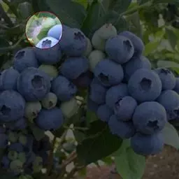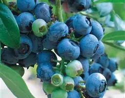 蓝莓是杜鹃花科、越橘属的落叶灌木,小枝绿色,具棱或圆柱形,通常具成行的柔毛;叶片近革质,卵形至椭圆形,…