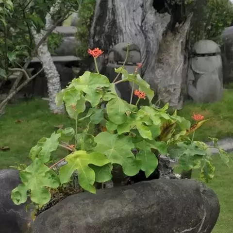 山庥杆,茎干直通,刚劲有力,叶片色泽美丽,除园林、庭院、路旁、 水滨露地栽培外,还可盆栽,置于阳台莳养和观赏。 盆栽山麻杆,要挑选大小适宜的土陶花盆。如果是新盆,还要用清水浸泡5~7天,待退火后便可使用。栽培时间宜在3月中下旬,先用数块碎盆片或碎瓦片棚盖花盆底孔,并在盆底先填一层木炭块和粗颗粒土壤,再装入培养土。山麻杄盆栽对土壤要求稍高,最好专门配制培养土,这种培养土可用森林腐叶土2份,山泥土2份,砂质菜园土2份, 河砂1份,禽类干粪1.5份,过磷酸钙、骨粉1.5份配制。上述基质配制的培养土,一定要腐熟,再经曝晒,整细过筛才能使用。栽培时,挑选形态美观的植株,带土团挖取,植于花盆中央,培养土填至盆沿2厘米处,留出一定空间,以利日后水肥管理。植株栽好后要把水浇透,置于向阳的地方,5-7天后再浇水一次,植株就能成活。