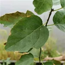 落叶灌木,高1-4(-5)米;嫩枝被灰白色短绒毛,一年生小枝具微柔毛。叶薄纸质,阔卵形或近圆形,长8-15厘米,宽7-14厘米,顶端渐尖,基部心形、浅心形或近截平,边缘具粗锯齿或具细齿,齿端具腺体,上面沿叶脉具短柔毛,下面被短柔毛,基部具斑状腺体2或4个;基出脉3条;小托叶线状,长3-4毫米,具短毛;叶柄长2-10厘米,具短柔毛,托叶披针形,长6-8毫米,基部宽1-1.5毫米,具短毛,早落。