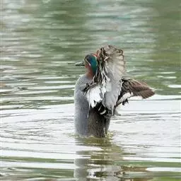 绿翅鸭是小型鸭类,体长37厘米,体重约0.5千克。嘴脚均为黑色。雄鸟头至颈部深栗色,…