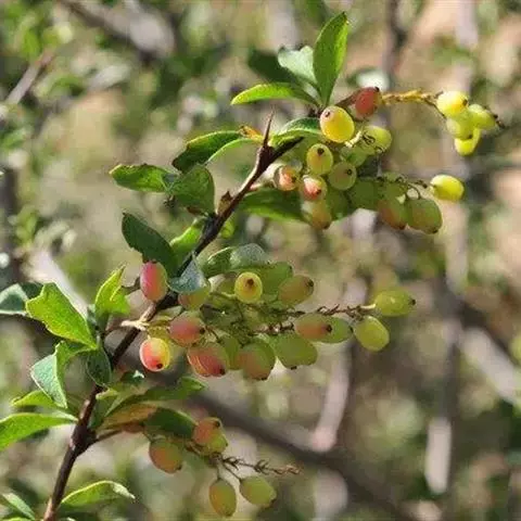 落叶灌木,高1 .5-2米。幼枝紫褐色,老枝灰黄色,具条棱,无疣点;茎刺单生,偶有三分叉,长1-4厘米,腹面具槽。叶薄纸质,长圆状菱形,长3.5-8厘米,宽1.5-4厘米,先端急尖,短渐尖或微钝,基部楔形,渐狭下延,上面暗黄绿色,中脉稍隆起,侧脉显著,孤曲斜上至近叶缘连结,背面灰白色,中脉和侧脉明显隆起,叶缘平展,全缘,有时稍呈波状;叶柄长1-2厘米。总状花序具3-15朵花,长2-5厘米,包括总梗长1-2厘米;花梗细弱,长4-8毫米,无毛;苞片披针形,先端渐尖,长1-1. 5毫米;花黄色;萼片2轮,外萼片长圆状卵形,长1.5-2毫米,宽1-1. 2毫米,先端急尖,内萼片长圆状倒卵形,长约4毫米,宽1-1.8毫米,先端钝;花瓣椭圆状倒卵形,长3-3.5毫米,宽1-1.8(-2.5)毫米,先端钝,全缘,基部缢缩呈爪,具2枚分离长圆形腺体;雄蕊长约3毫米,药隔先端不延伸,钝形;胚珠单生,无柄。浆果长圆状椭圆形,长8-12毫米,直径3-4.5毫米,熟时红色,顶端不具宿存花柱,不被白粉。花期4-5月,果期6-10月。