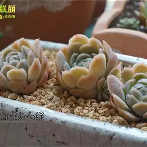 石莲花属的种子播种其实也很容易。石莲花属植物在人工栽培条件下,一般需要人工授粉。授粉成功,待种子成熟后,即可播种。石莲花种子细小,需仔细收集。播种容器中装排水良好的基质,表面覆盖沙砾,容器浇透水后,均匀地将种子撒播在沙砾上,盖上玻璃片或罩透明薄膜,放置在散射光处,很快会发芽。发芽后去掉玻璃片或薄膜。