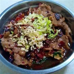 辅料:豆瓣酱大半勺 、小青椒8个、姜3片、 花椒1小把、料酒3勺 、盐适量、甜面酱小半勺 、蒜2瓣、大葱半根 、老抽半勺。