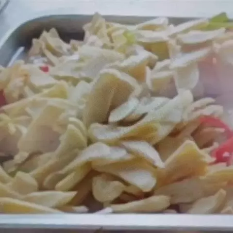 一些在家里主厨的人,习惯冷锅放油,还习惯直接放生油熬熟后做菜,一般来讲,这都是烹饪之忌。冷锅热到劲起,油温过高,生油熬熟,油烟太重,炝入菜中,大败菜的本味。因此,应该待锅热后,放入已经熬熟的油,做回锅肉也要先放一点油,最好是熬熟的菜油,菜油与肉中的猪油融合,更有煎熬的香味。应该待锅热后,放入已经熬熟的油,菜油与肉中的猪油融合,更有煎熬的香味,当今城里人,已很少用菜油的,况且,市面上也很少能买着质地清醇的菜油,那就只好用调和油了。还有人怕油太重,干脆不放油,直接将切好的猪肉放入锅中煎熬,这样做,油是不重了,但肉也干焦了,入口难以化渣,全无了回锅肉干香中徐徐而来的细软。其实,嫌油太重,下配料和作料前,倒出一些就是。