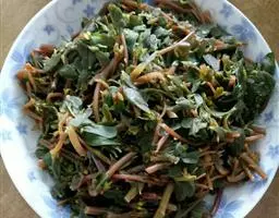 倒入青蒜,料酒、盐、糖、生抽,翻炒均匀即可。