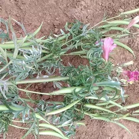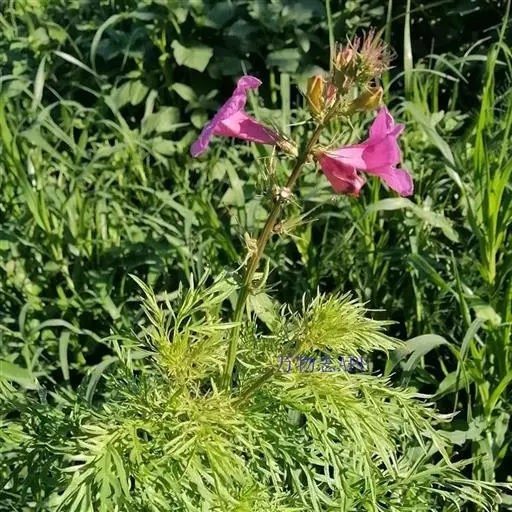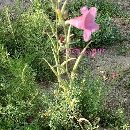 一年生至多年生草本,具分枝的茎,高达80厘米。根近木质而分枝。叶互生;叶柄长1~3厘米;叶片二至三回羽状细裂,小叶不规则细裂,末回裂片线状披针形,具细齿或全缘。顶生总状花序,疏散,长达20厘米;花梗长1~5毫米;小苞片绿色,线形,长3~5毫米;花萼钟状,绿色带紫红色,长、宽均约5毫米,萼齿间皱褶2浅裂;花冠淡玫瑰色或粉红色,有时带紫色,钟状漏斗形,先端5裂,裂片圆形;雄蕊4,2强,花药成对靠合;子房上位,2室,柱头2裂。蒴果淡绿色,细圆柱形,先端尾状渐尖,长3.5~ 5.5厘米,粗约5毫米:种子扁圆形,细小,直径约2毫米,四周具透明的膜质翅,先端具缺刻。花期5~9月,果期10~ 11月 。