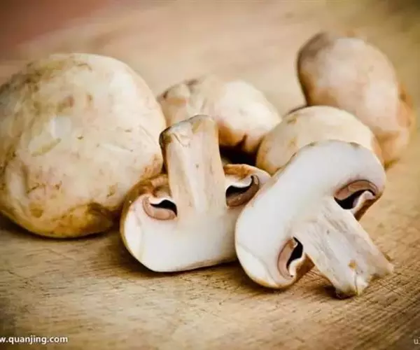 双孢蘑菇 广泛分布于北半球温带,喜生长在粪草发酵料上的一种伞菌,属蘑菇科(黑伞科)(Agaricaceae)蘑菇属。学名Agaricusbisporus,别名蘑菇、洋蘑菇、白蘑菇等。双孢蘑菇每100g鲜品中约含蛋白质3.7g、脂肪0.2g、糖3.0g、纤维素0.8g、磷110mg、钙9mg、铁0.6mg。双孢蘑菇含有多种氨基酸、核苷酸、维生素B1、维生素B2、维生素C、维生素PP、维生素D原等。双孢蘑菇所含的酪氨酶有明显降低血压作用,多糖的醌类化合物与巯基结合,可抑制脱氧核糖核酸合成,在医学上,有抑制肿瘤细胞活性的作用。