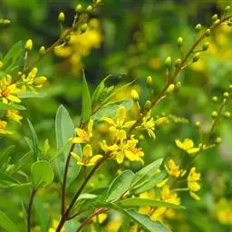 金英常绿灌木,株高约50-160厘米,嫩茎红色。叶片绿色,对生,椭圆形,先端尖,基部楔形,全缘。…