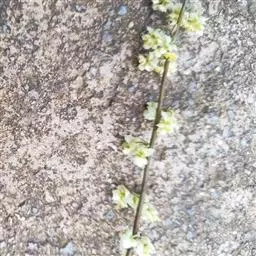 伞形花序常3个簇生叶腋,几无总梗;每一花序有花3-4朵,花小,近于无梗;花被筒杯状,被柔毛;花被裂片6,倒卵状圆形,大小不等,能育雄蕊9,花丝有稀疏柔毛,腺体小,圆形;退化雌蕊细小,无毛。