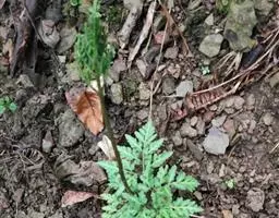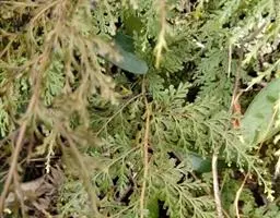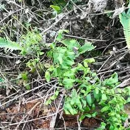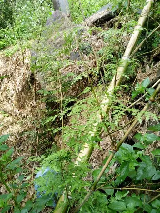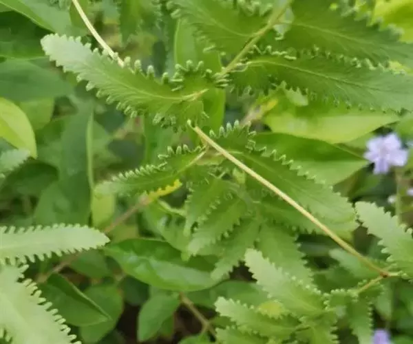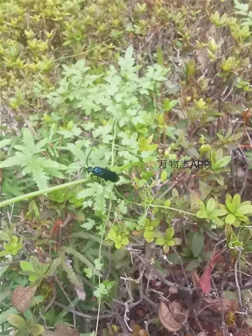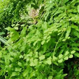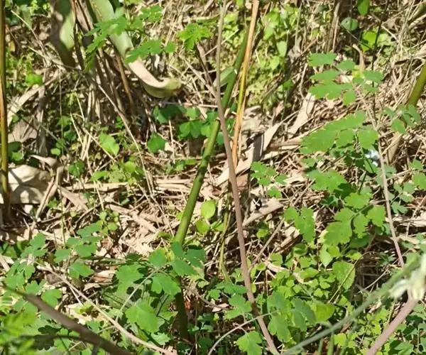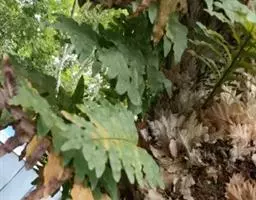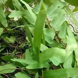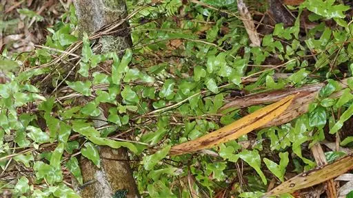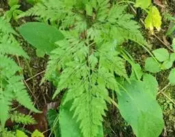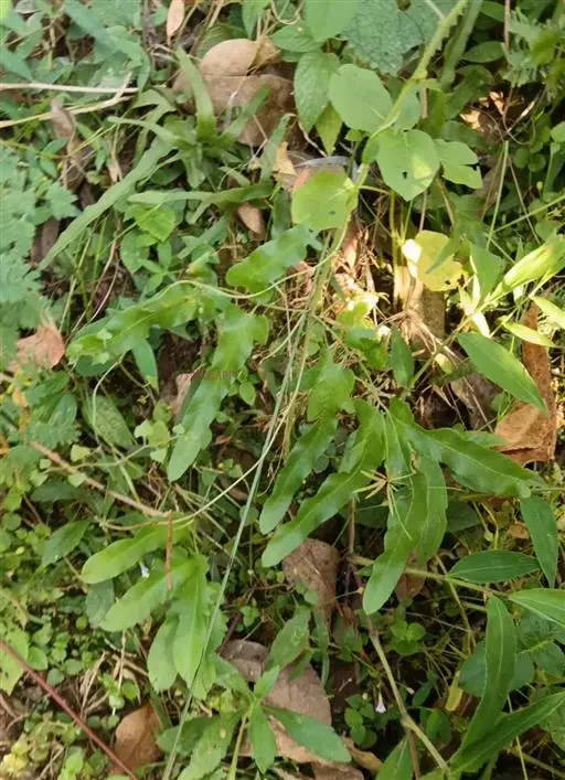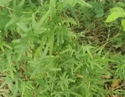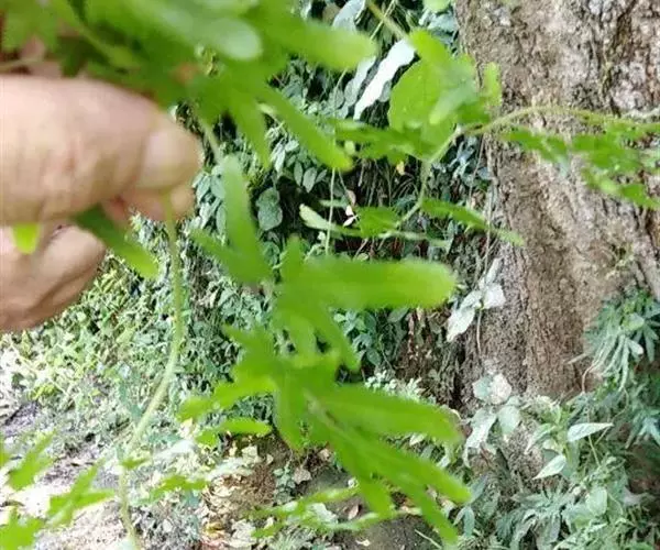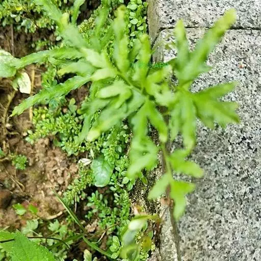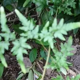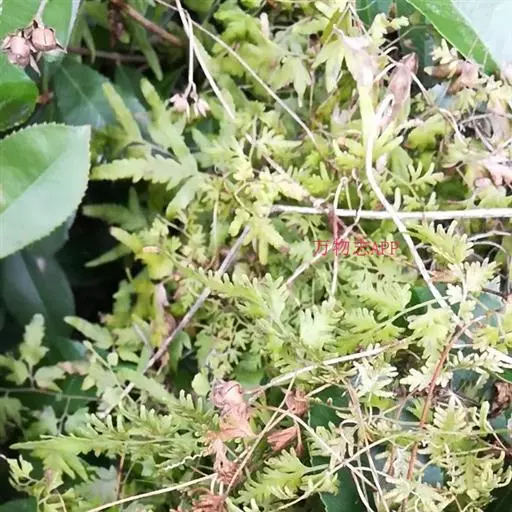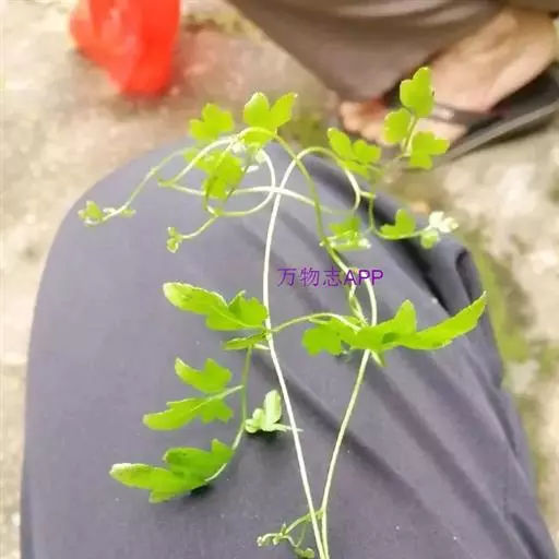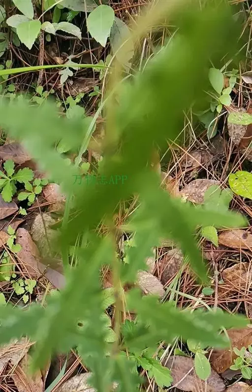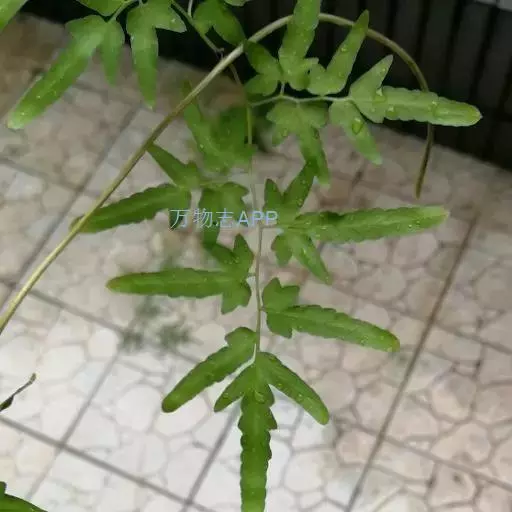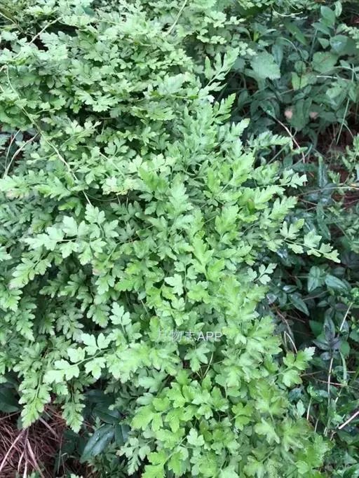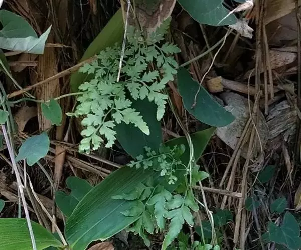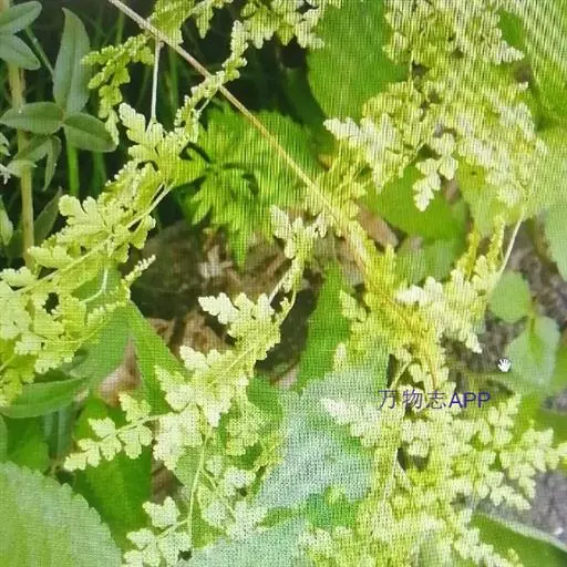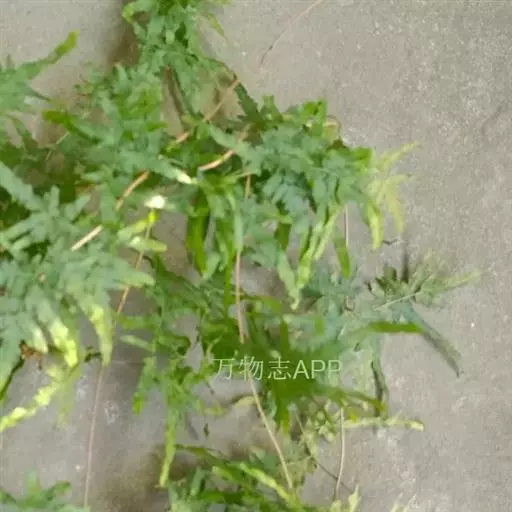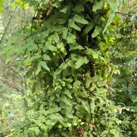 多年生草质藤本,长1~5m。根状茎横走,生黑褐色有节的毛;根须状,黑褐色,坚韧,亦被毛。叶多数,对生于茎上的短枝两侧,二型,纸质,连同叶轴和羽轴有疏短毛:营养叶尖三角形,长、宽各10~300px,二回羽状,小羽片掌壮或3裂,宽3~8mm,边缘有不整齐的细钝锯齿,孢子叶卵状三角形,长、宽各10~500px,多收缩而呈深撕裂状。夏末,小羽片下面边缘生流苏状的孢子囊穗,穗长2~5mm,黑褐色,孢子表面有小疣。