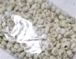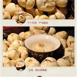 2.平贝:为百合科平贝母的干燥鳞茎。商品多来源于栽培,主产东北。本品外形扁球状,形如算盘珠,高0.5~1cm,直径0.6~2cm。表面乳白色或淡黄白色,外层有鳞叶两瓣,肥厚饱满,大小相近或一片较大,互相抱合,顶端微平或微凹入,稍开裂。中央鳞片小,质坚实而脆,富粉性。平贝与川贝 贝母 最大的区别在于平贝较川贝大,扁平不圆,色常不白,味苦。有用小粒平贝充松贝者,其直径仅约0.5cm,呈圆锥形,形似松贝,但顶端较圆,鳞叶两瓣大小亦极悬殊,大抱小,但小鳞叶仅呈米粒样,只在中部显现,多不到基部(不似松贝之怀中抱月形)。味苦。