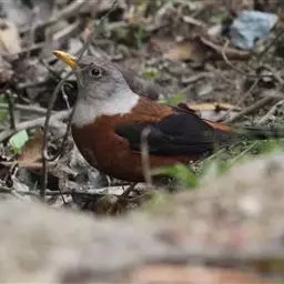 灰头鸫:中型鸟类,体长23-27厘米。整个头、颈和上胸褐灰色,两翅和尾黑色,上、下体羽栗棕色。…