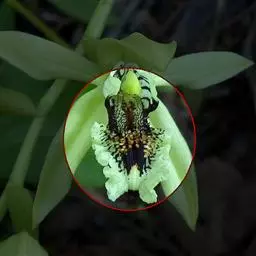 花瓣丝状或狭线形,与萼片近等长,宽0.7-1毫米;唇瓣卵形,3裂,长1.3-1.8厘米;侧裂片近卵形,直立,顶端多少具流苏;中裂片近椭圆形,长5-7毫米,宽5-6毫米,先端钝,边缘具流苏;唇盘上通常具2条纵褶片,从基部延伸至中裂片上部近顶端处,有时在中裂片外侧还有2条短的褶片,唇盘基部还有1条短褶片;褶片上均有不规则波状圆齿;蕊柱稍向前倾,长1-1.3厘米,两侧具翅,翅自基部向上渐宽,一侧宽1-1.3毫米,顶端略有不规则缺刻或齿。