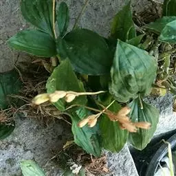 流苏贝母兰根状茎较细长,匍匐,粗1.5-2.5毫米,节间长3-7毫米。假鳞茎在根状茎上相距2-4. 5 (-8 )厘米,狭卵形至近圆柱形,长2-3 (-4.5 )厘米,粗5-15毫米,干后无光泽,顶端生2枚叶,基部具2-3枚鞘;鞘卵形,长1-2厘米,老时脱落。叶长圆形或长圆状披针形,纸质,长4-10厘米,宽1-2厘米,急端急尖;叶柄长1-1.5(-2)厘米。