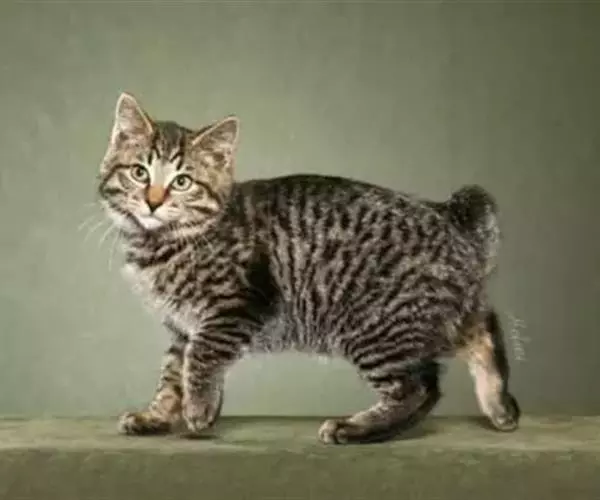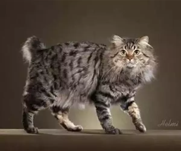 美国短尾猫成年雄性的短尾猫总长0.7-1.2米,平均0.9米,包括了10-18厘米长的尾巴,肩高36-38厘米,一般重7-14公斤。雌性平均重9公斤。短尾猫肌肉发达,后肢较前肢长。出生时短尾猫约重280-340克,长25厘米。出生首年可生长达4.5公斤重。 短尾猫像其他猞猁属的物种,但平均较为细小。它的毛皮各有不同,一般都是黄褐色至灰褐色,身体、前肢及尾巴上有黑色斑纹。它的圆斑点可以用来伪装。耳朵尖端呈黑色,有短簇的毛。嘴唇、面颊及腹部一般都是米白色。在西南部沙漠地区的短尾猫毛皮较浅色,而在北部森林的则较深色。幼猫出生时已经有毛皮及斑点。有少数黑变病的短尾猫在佛罗里达州被发现。它们是黑色的,但可能仍保有斑点。 短尾猫的脸因耳朵下的毛发看似很宽。它的毛皮容易受损,但毛较长及密。鼻子呈粉红色,面部、两侧及背部为灰色、黄红色或褐红色。眼睛呈黄色,而瞳孔是黑色的。瞳孔上下较长,在晚间会扩张以获得最多的光线。