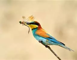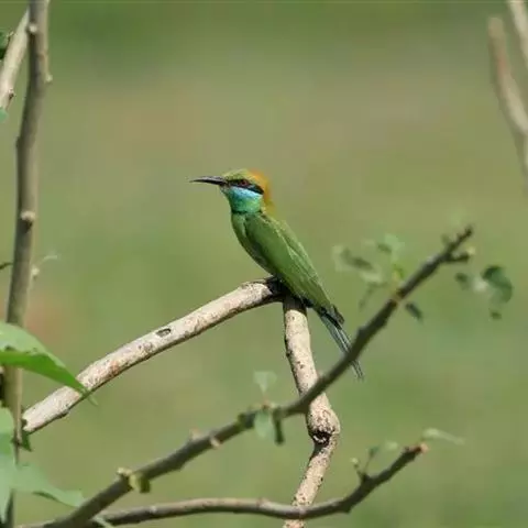 蓝颊蜂虎:是蜂虎科、蜂虎属的鸟类,共有2个亚种。体长27-33厘米,翼展46-49厘米,…