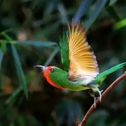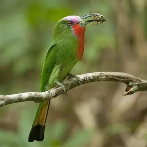 南红蜂虎中等大小,嘴形细长而下弯,先端尖,嘴峰有棱脊;脚细弱,中趾与外趾至少连结至基部第二个关节,…