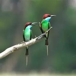 栗喉蜂虎是蜂虎科蜂虎属的鸟类。有热带鸟类羽毛艳丽的特征:喉部是栗红色的,黑色的过眼纹,…