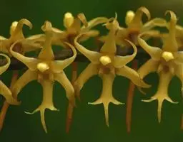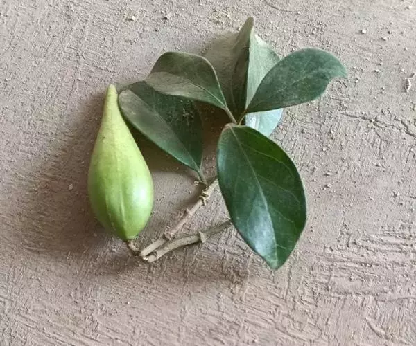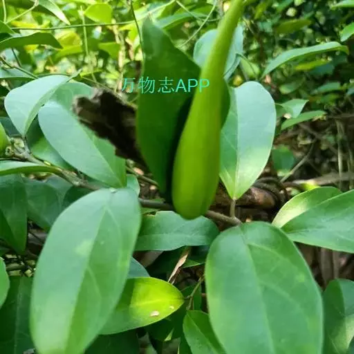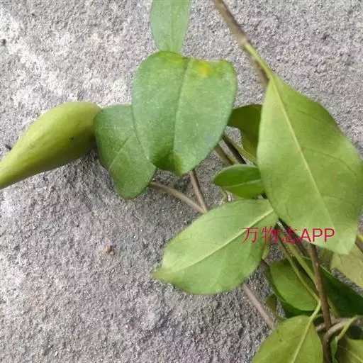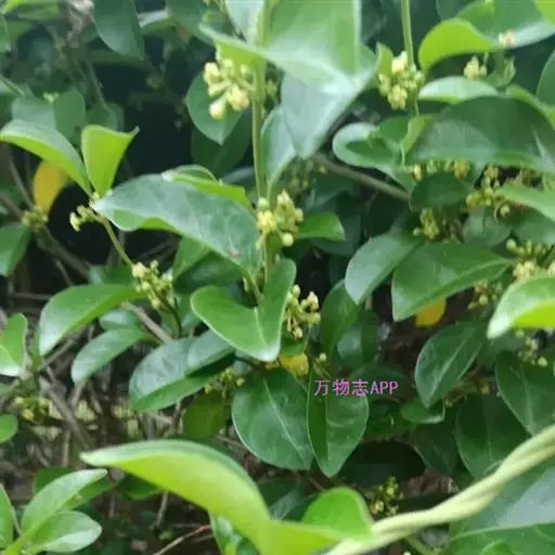 木质藤本,长达4米,具乳汁;茎皮灰褐色,具皮孔,幼枝被微毛,老渐无毛。叶倒卵形或卵状长圆形,长3-8厘米,宽1.5-4厘米,仅叶脉上被微毛;侧脉每边4-5条,弯拱上升;叶柄长3-10毫米,被短柔毛,顶端具丛生腺体。聚伞花序伞形状,腋生,比叶为短;花序梗长2-5毫米,被短柔毛;花梗长2-3毫米,纤细,被短柔毛;花小,绿白色,长和宽约2毫米;花萼裂片卵圆形,钝头,被缘毛,花萼内面基部有5个腺体;花冠绿白色,钟状,裂片卵圆形,钝头,略向右覆盖;副花冠着生于花冠裂片弯缺下,厚而成硬条带;雄蕊着生于花冠筒的基部;花药长圆形,顶端具膜片;花粉块长圆形,直立;柱头宽而短圆锥状,伸出花药之外。蓇葖卵状披针形,长5-9厘米,基部宽2厘米,基部膨大,顶部渐尖,外果皮硬,无毛;种子卵圆形,薄而凹陷,顶端截形或钝,基部圆形,有薄边,顶端轮生的种毛白色绢质;种毛长3.5厘米。花期5-9月,果期10月-翌年1月。
