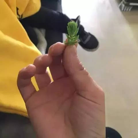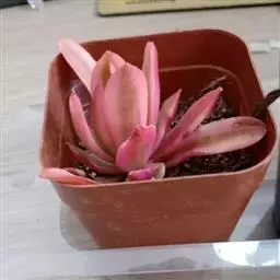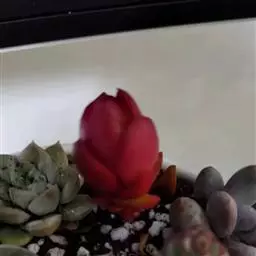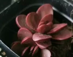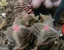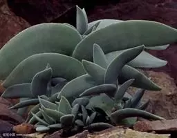 叶子表面宽厚,富肉质感且带有磨纱质感,看像石头质地;开红色小花,生于植株顶部,倒伞形密生,形状像花…