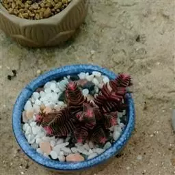⑵其根系欠发达,地上部分宽大,有些头重脚轻,器皿底部可用卵石、彩石固定。