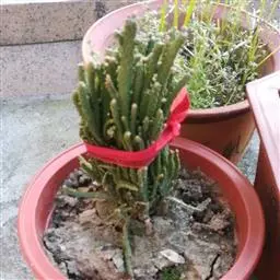 多浆肉质亚灌木。株高1-3米。茎干肉质,粗壮,干皮灰白,色浅,分枝多,小枝褐绿色,色深。叶肉质,卵圆形,长4厘米左右,宽3厘米,叶片灰绿色。花期春末夏初,筒状花直径2厘米,白或淡粉色。 玉树