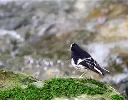 白喉红尾鸲,小型鸟类,体长14-16厘米。雄鸟额至枕钴蓝色,头侧、背、两翅和尾黑色,翅上有一大形白斑,…
