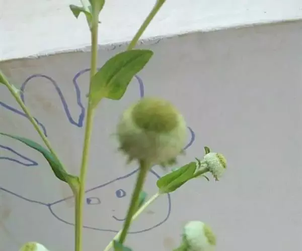 头状花序球形或半球形,径1-1.5厘米,单生茎顶或枝端,多数头状花序排列成疏松的伞房状或伞房状圆锥花序。总苞片2-3层,几等长,外面被微柔毛。边缘舌状雌花多层;舌片圆形,长宽相当,顶端圆形或微凹;两性花管状,檐部宽钟状,顶端4齿裂,管部有微柔毛。