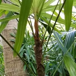 琼棕:又名陈棕,濒危种。常绿丛生灌木至小乔木状,高3至8米,茎直立、粗壮,直径4至8厘米。叶掌状深裂,…