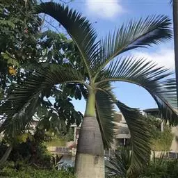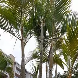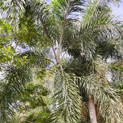 王棕(学名:Roystonea regia (H.B.K)O.F.Cook):又名大王椰子。乔木;单干,直立叶痕不明显,叶簇生于干顶,叶片大,长达3米以上,叶鞘长大,羽状全裂,羽叶狭长柔软,列序不甚整齐,深绿色。干粗壮雄伟,中下部膨大,呈佛肚状,径达40厘米以上,确为棕类之王,是显示热带壮丽风光的典型树种,
