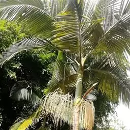 王棕,茎直立,乔木状,高10-20米;茎幼时基部膨大,老时近中部不规则地膨大,向上部渐狭。叶羽状全裂,弓形并常下垂,长约4-5米,叶轴每侧的羽片多达250片,羽片呈4列排列,线状披针形,渐尖,顶端浅2裂,长90-100厘米,宽3-5厘米,顶部羽片较短而狭,在中脉的每侧具粗壮的叶脉。