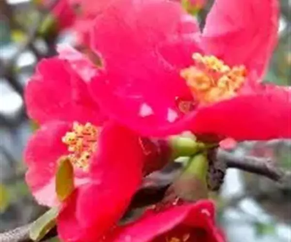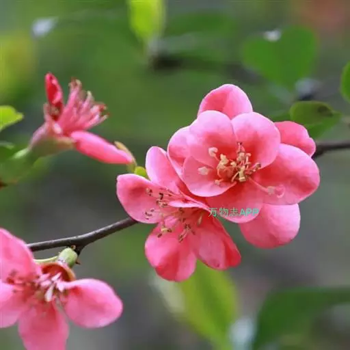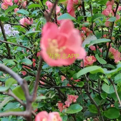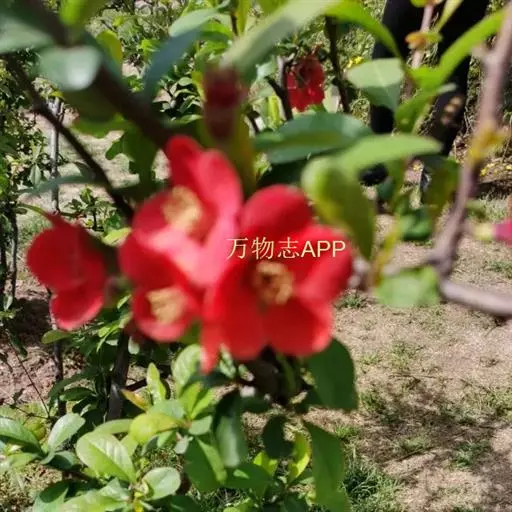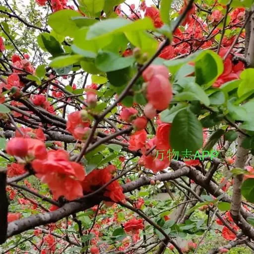 落叶灌木,高达2米,枝条直立开展,有刺;小枝圆柱形,微屈曲,无毛, 皱皮木瓜 紫褐色或黑褐色,有疏生浅褐色皮孔;冬芽三角卵形,先端急尖,近于无毛或在鳞片边缘具短柔毛,紫褐色。叶片卵形至椭圆形,稀长椭圆形,长3-9厘米,宽1.5-5厘米,先端急尖稀圆钝,基部楔形至宽楔形,边缘具有尖锐锯齿,齿尖开展,无毛或在萌蘖上沿下面叶脉有短柔毛;叶柄长约1厘米;托叶大形,草质,肾形或半圆形,稀卵形,长5-10毫米,宽12-20毫米,边缘有尖锐重锯齿,无毛。花先叶开放,3-5朵簇生于二年生老枝上;花梗短粗,长约3毫米或近于无柄;花直径3-5厘米;萼筒钟状,外面无毛;萼片直立,半圆形稀卵形,长3-4毫米。宽4-5毫米,长约萼筒之半,先端圆钝,全缘或有波状齿,及黄褐色睫毛;花瓣倒卵形或近圆形,基部延伸成短爪,长10-15毫米,宽8-13毫米,猩红色,稀淡红色或白色;雄蕊45-50,长约花瓣之半;花柱5,基部合生,无毛或稍有毛,柱头头状,有不显明分裂,约与雄蕊等长。果实球形或卵球形,直径4-6厘米,黄色或带黄绿色,有稀疏不显明斑点,味芳香;萼片脱落,果梗短或近于无梗。花期3-5月,果期9-10月。