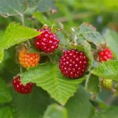 覆盆子为灌木,高1—2米;枝褐色或红褐色,幼时被绒毛状短柔毛,疏生皮刺。小叶3-7枚,长卵形或椭圆形,…