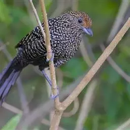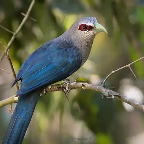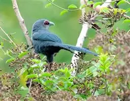绿嘴地鹃:体形似小鸦鹃,但羽色大致绿灰;嘴绿色,头侧眼的周围有一裸区;后爪弯曲。虹膜赤红色,…