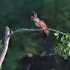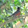 画眉给红翅凤头鹃喂食(汤太平摄影)