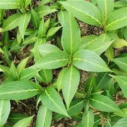 多年生草本;具根茎,侧根肉质增厚。茎高20-40厘米,微粗糙,节稍膨大。叶对生,无柄或几无柄;叶片矩圆状披针形,长4-18厘米,宽1.5-3厘米,顶端渐尖,基部狭楔形,侧脉7-9对,上面无毛,下面脉上被微毛,边缘具钝齿或微波状。