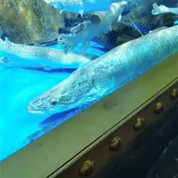 巨骨舌鱼(学名:Arapaima gigas):是巨骨舌鱼属(Arapaima)的物种,亦称海象鱼。成鱼体长可达2-6米,重可达100千克。体形巨大,长形,稍侧扁。头部骨骼由游离的板状骨组成。口大,无须。无下颌骨,舌上有坚固发达的牙齿。鳔四周富有血管,内表呈蜂窝状,常有特殊的鳃上器。鳞片大且硬,呈嵌镶状。背鳍和臀鳍位于体的后部,互为相对。胸鳍位低。腹鳍位腹部之后。尾鳍圆形。体灰绿色,背部颜色深,腹部较淡,尾鳍及体后部红色。