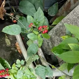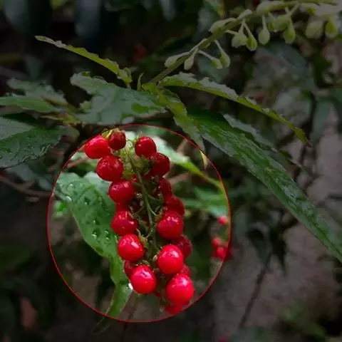 蕾芬,别名数珠珊瑚、小商陆、胭脂草, 半灌木,高30-100厘米。茎直立,枝开展,幼时被短柔毛。
